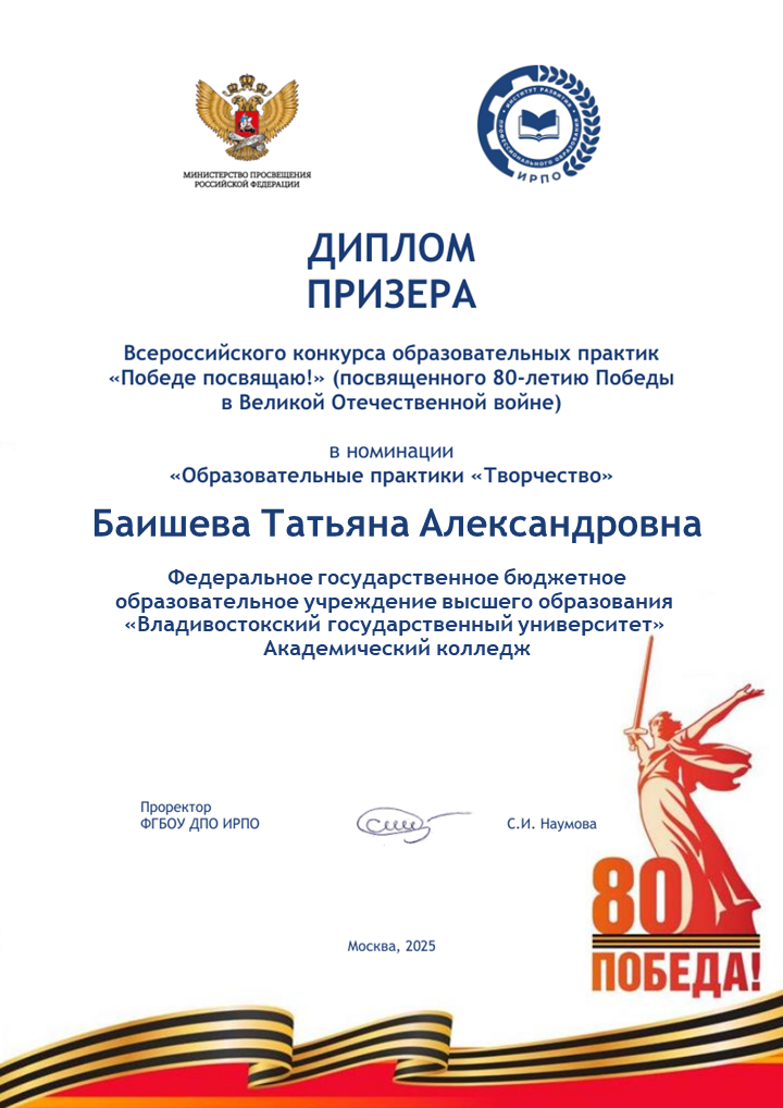 Всероссийский конкурс образовательных практик "Победе посвящаю!" (посвященного 80-летию Победы в Великой Отечественной войне)
