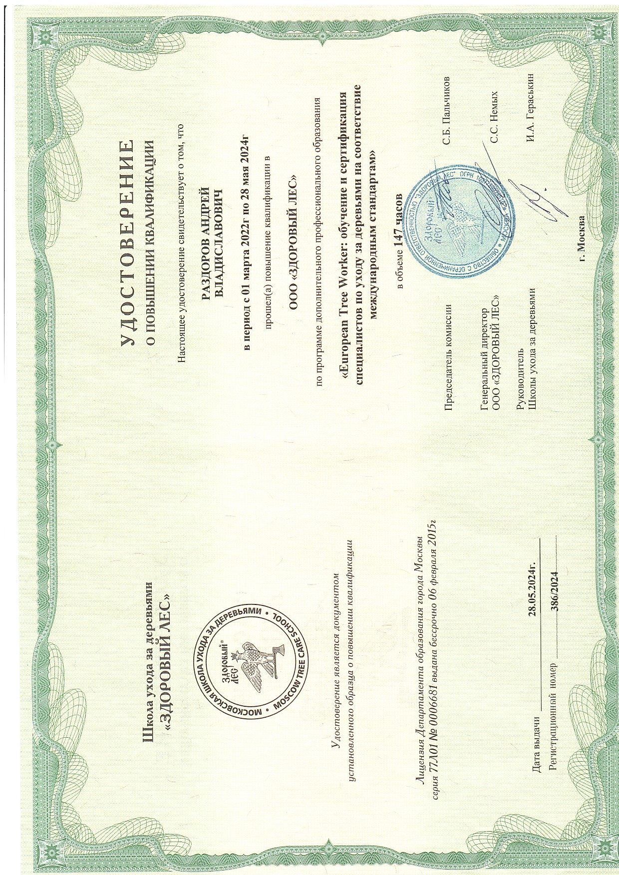 Сертификация European Tree Worker. Обучение и сертификация специалистов по уходу за деревьями на соответствие международным стандартам