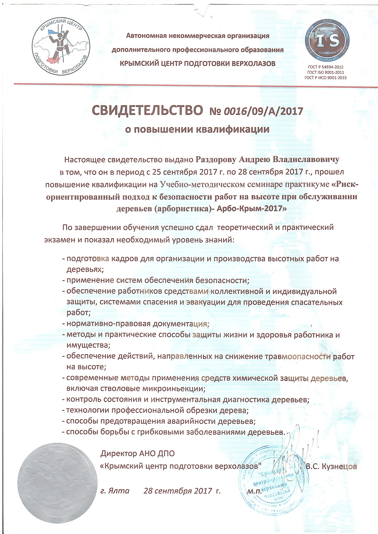 Риск-ориентированный подход к безопасности работ на высоте при обслуживании деревьев (арбористика) Арбо-Крым 2017