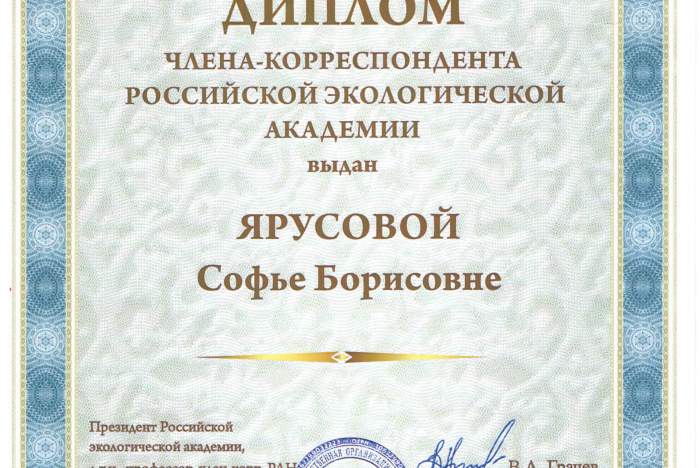 с 2011 г. - член-корреспондент Российской экологической академии.