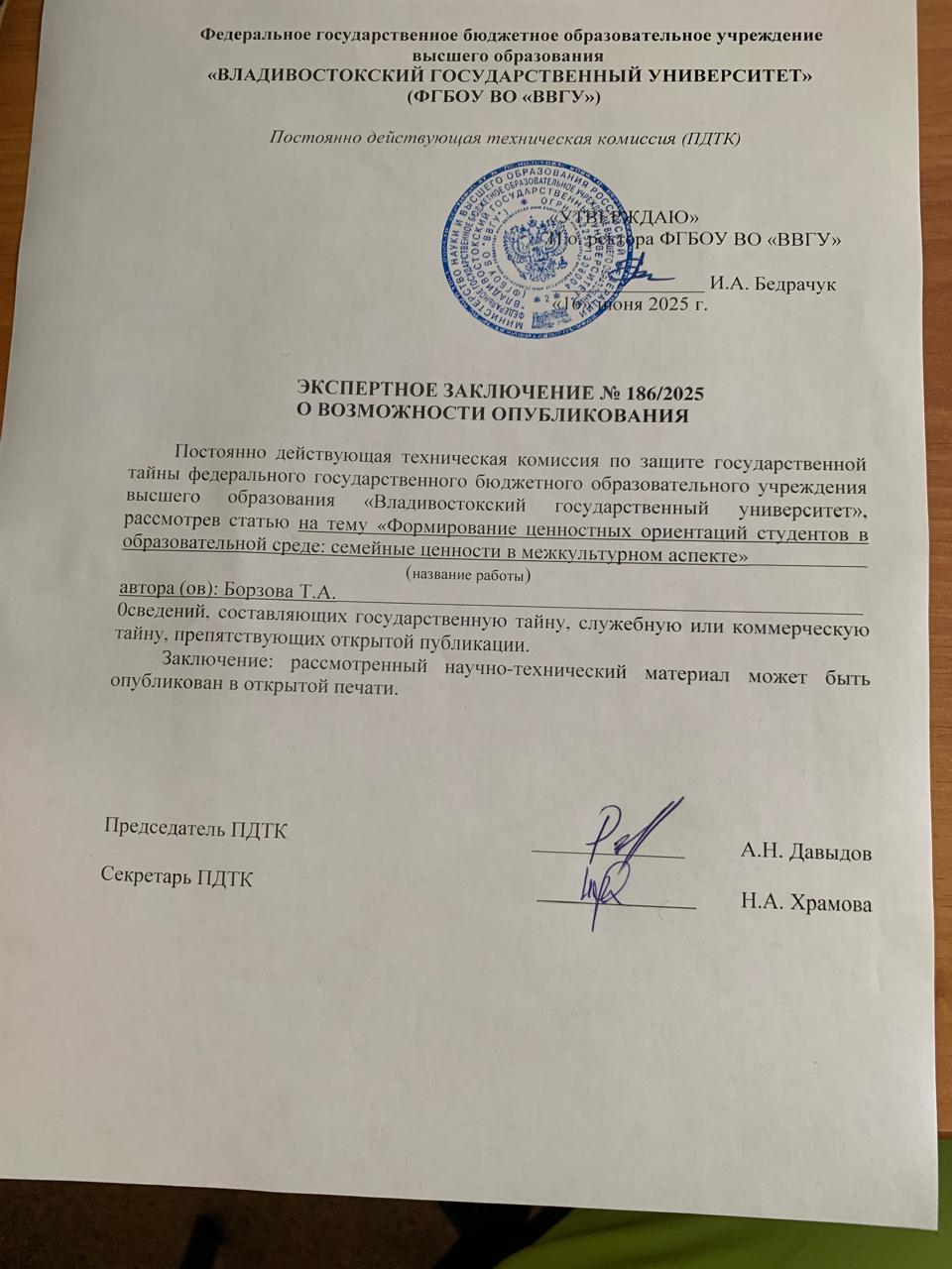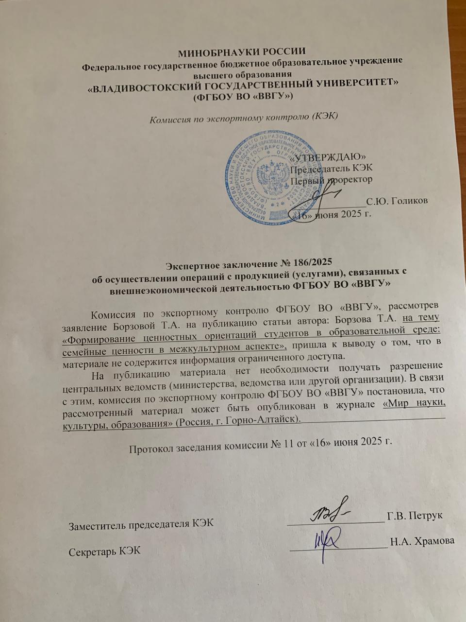 ФОРМИРОВАНИЕ ЦЕННОСТНЫХ ОРИЕНТАЦИЙ СТУДЕНТОВ В ОБРАЗОВАТЕЛЬНОЙ СРЕДЕ: СЕМЕЙНЫЕ ЦЕННОСТИ В МЕЖКУЛЬТУРНОМ АСПЕКТЕ