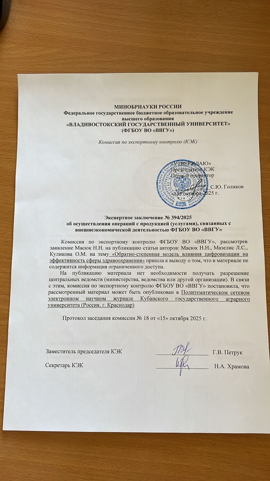 Обратно-степенная модель влияния цифровизации на эффективность сферы здравоохранений