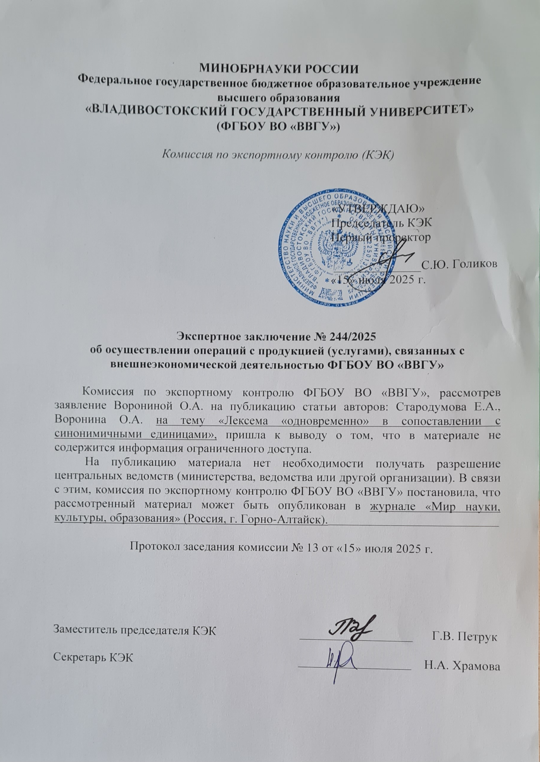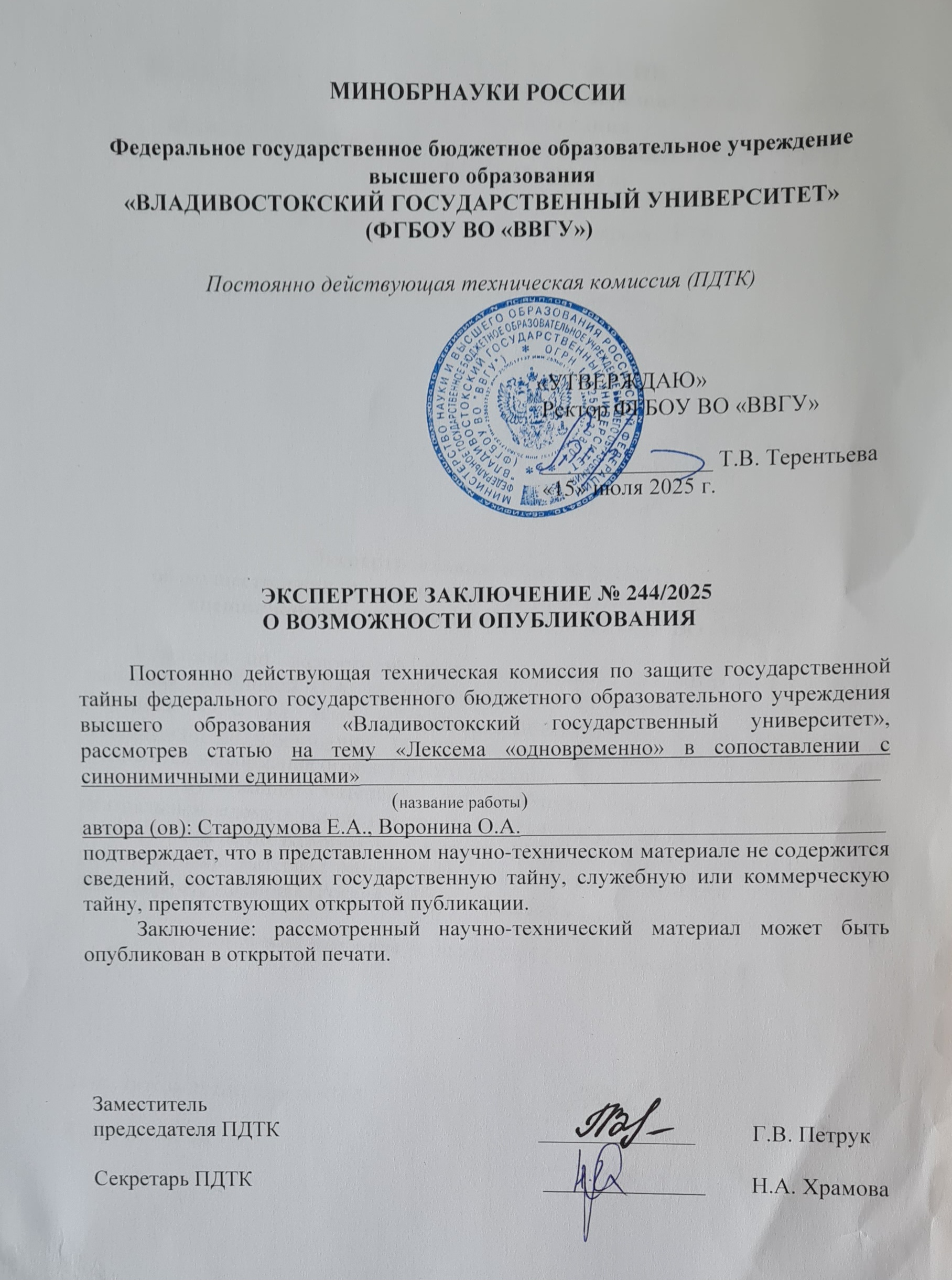 «ЛЕКСЕМА «ОДНОВРЕМЕННО» В СОПОСТАВЛЕНИИ С СИНОНИМИЧНЫМИ ЕДИНИЦАМИ»