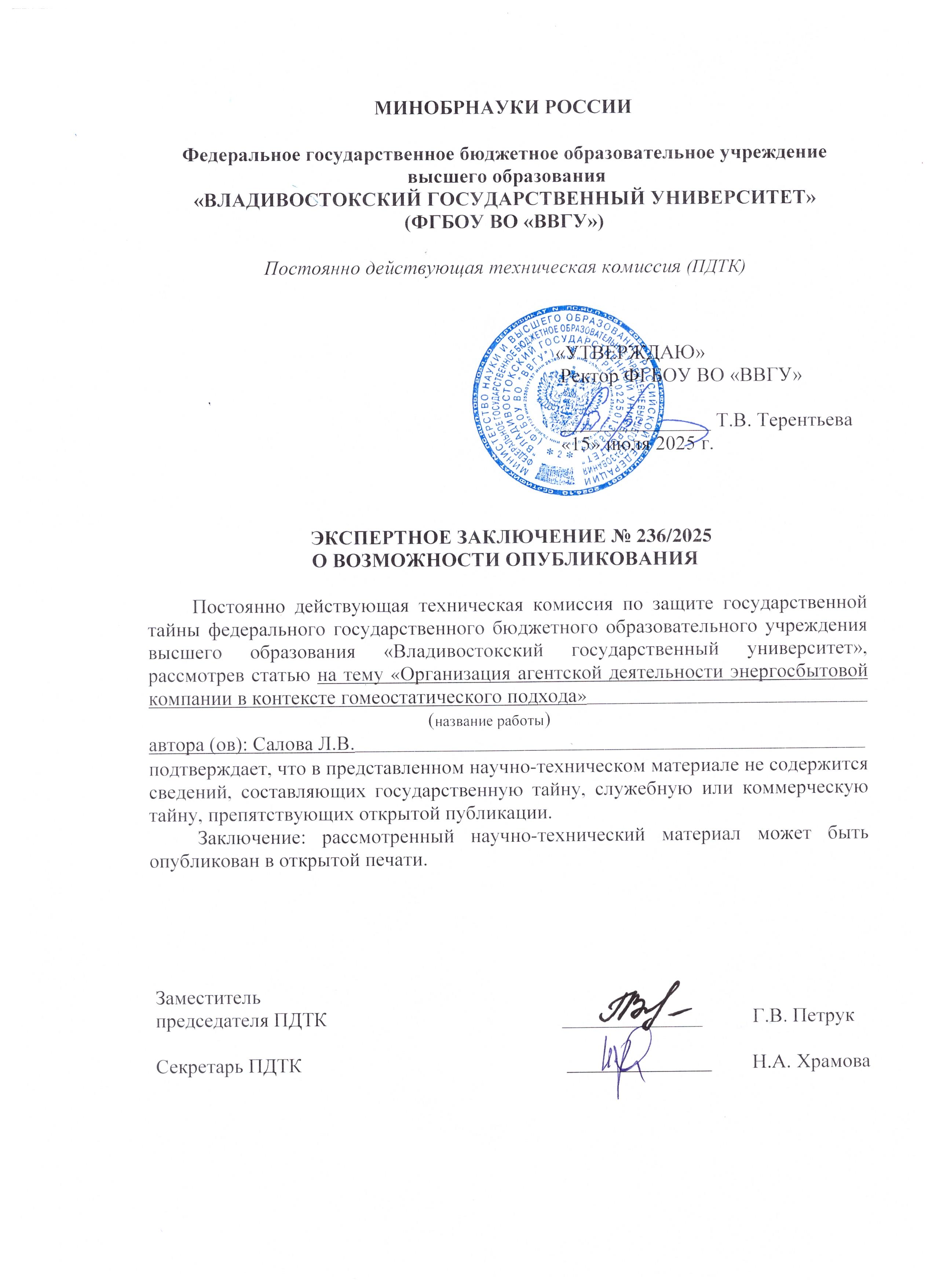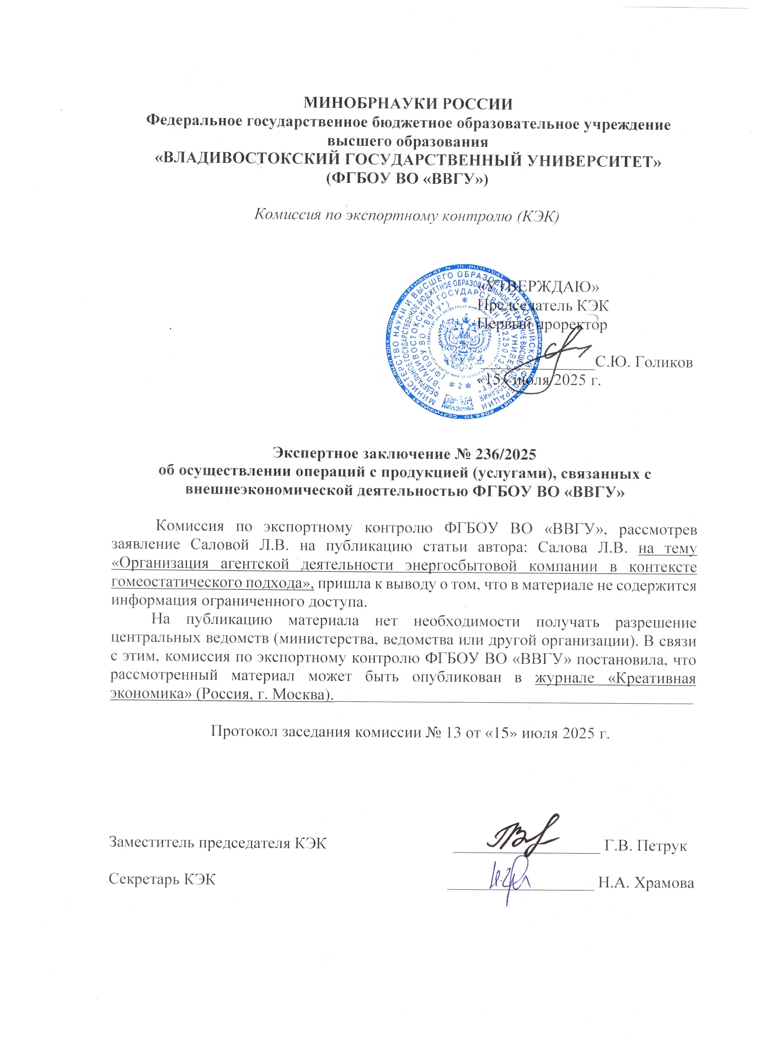 ОРГАНИЗАЦИЯ АГЕНТСКОЙ ДЕЯТЕЛЬНОСТИ ЭНЕРГОСБЫТОВОЙ КОМПАНИИ В КОНТЕКСТЕ ГОМЕОСТАТИЧЕСКОГО ПОДХОДА