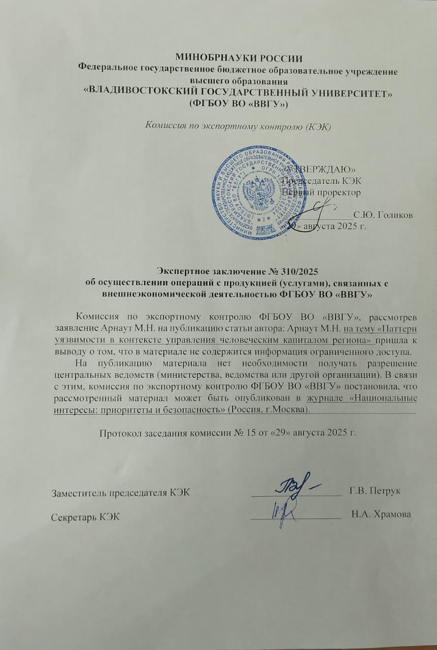 Паттерн уязвимости в контексте управления человеческим капиталом региона