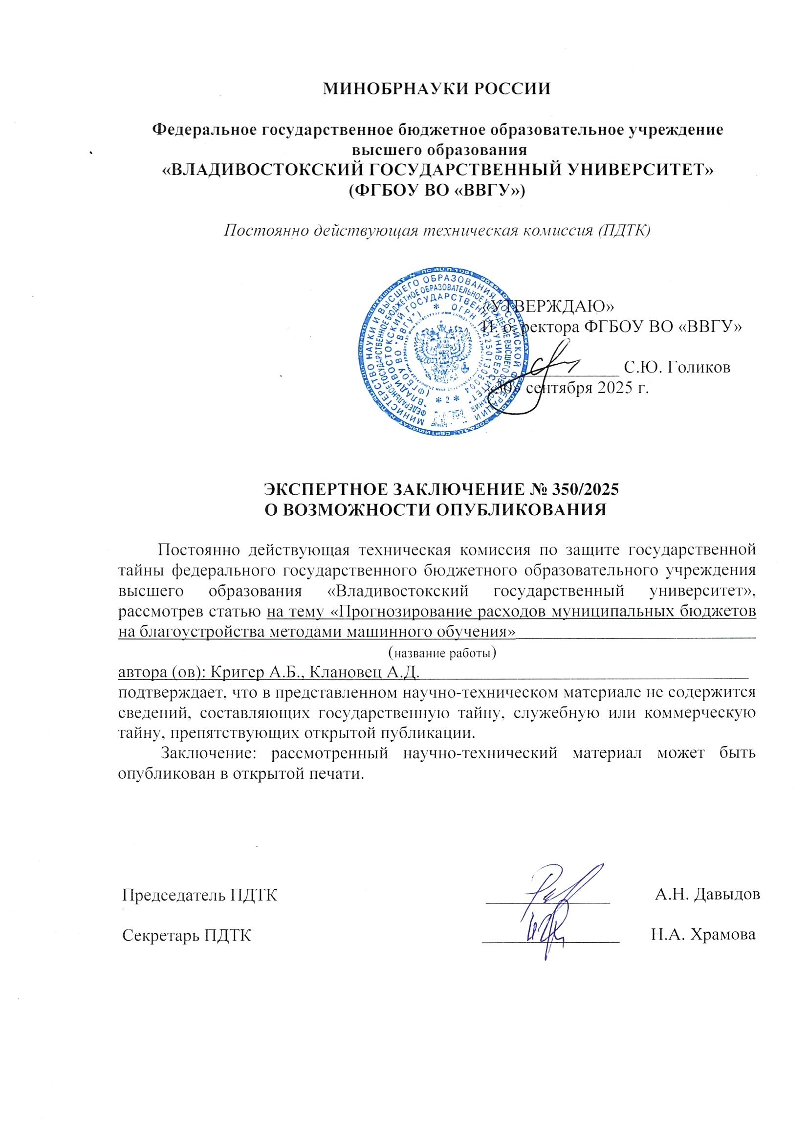 ПРОГНОЗИРОВАНИЕ РАСХОДОВ МУНИЦИПАЛЬНЫХ БЮДЖЕТОВ НА БЛАГОУСТРОЙСТВО МЕТОДАМИ МАШИННОГО ОБУЧЕНИЯ