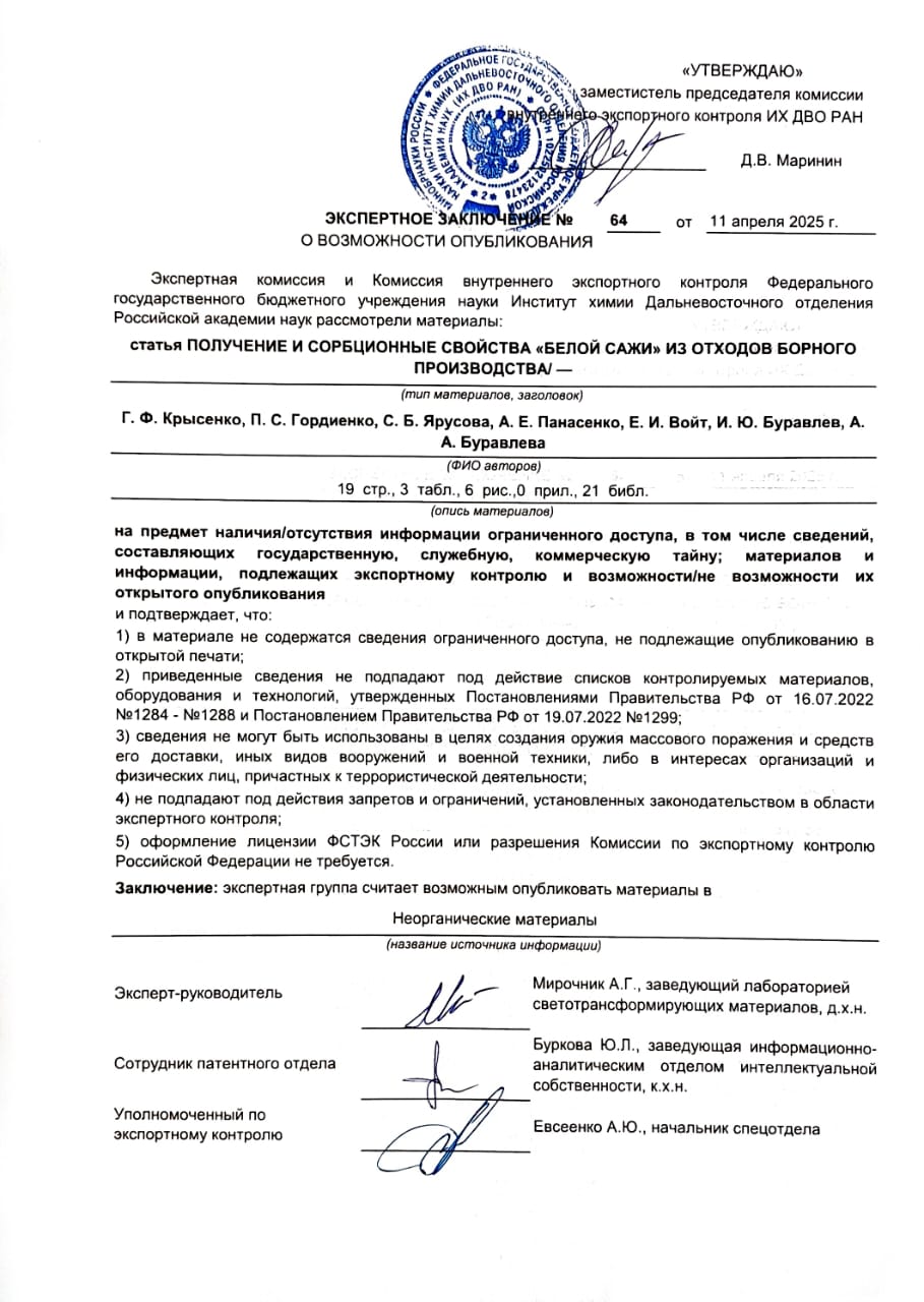 Получение и сорбционные свойства «белой сажи» из отходов борного производства