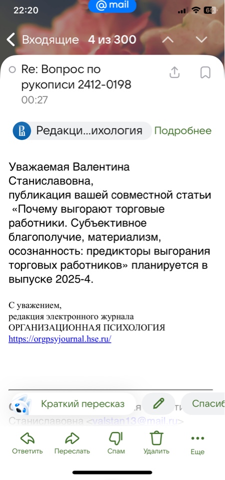 Почему выгорают торговые работники. Субъективное благополучие, материализм, осознанность: предикторы выгорания торговых работников