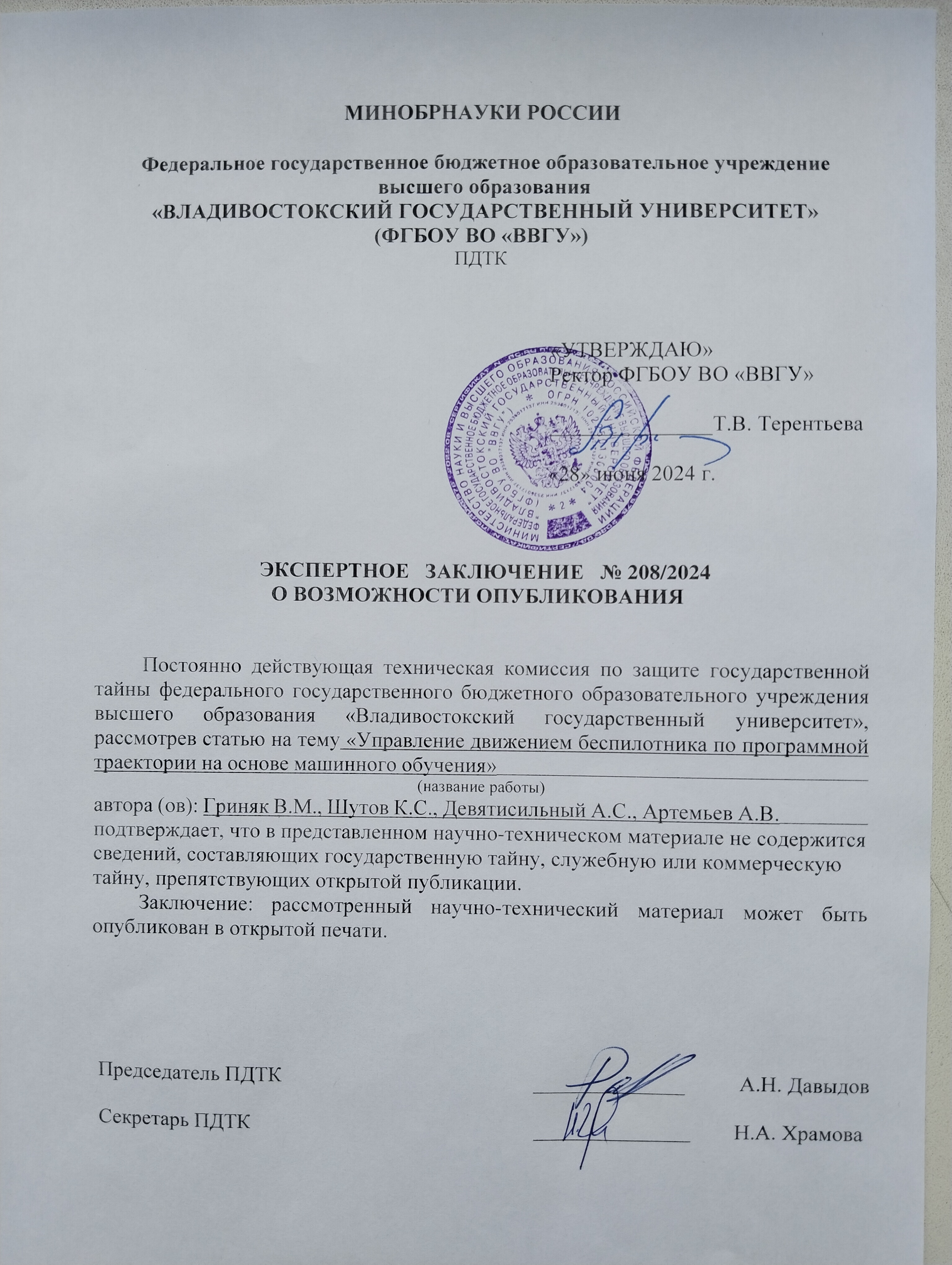 Управление движением беспилотника по программной траектории на основе машинного обучения