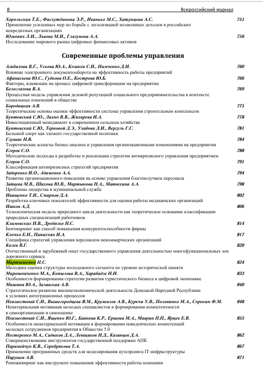 Методика оценки структуры молодежного сегмента по уровню исторической памяти