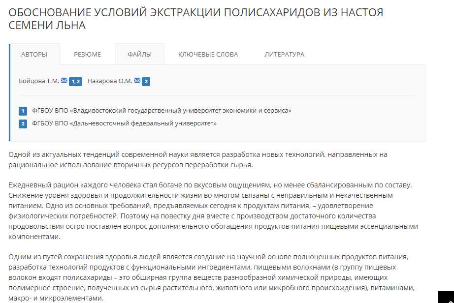 Обоснование условий экстракции полисахаридов из настоя семени льна