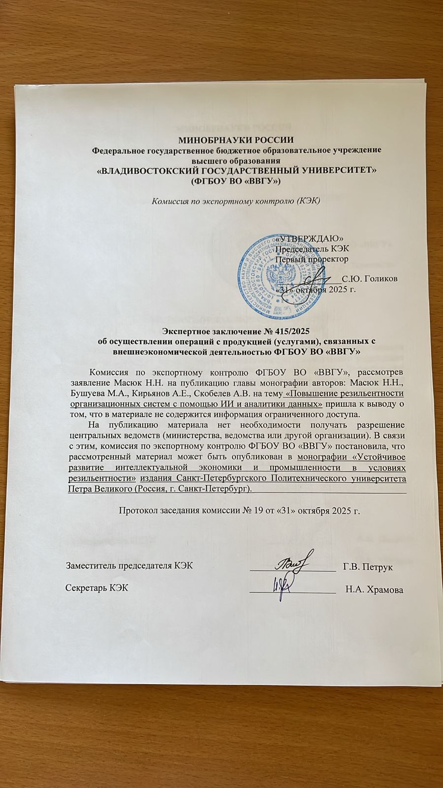 Устойчивое развитие интеллектуальной экономики и промышленности в условиях резильентности