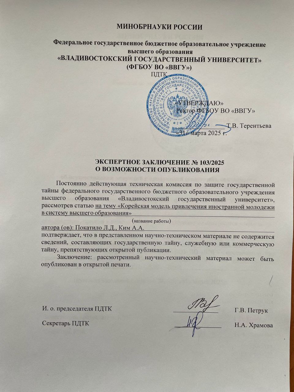 КОРЕЙСКАЯ МОДЕЛЬ ПРИВЛЕЧЕНИЯ ИНОСТРАННОЙ МОЛОДЕЖИ В СИСТЕМУ ВЫСШЕГО ОБРАЗОВАНИЯ