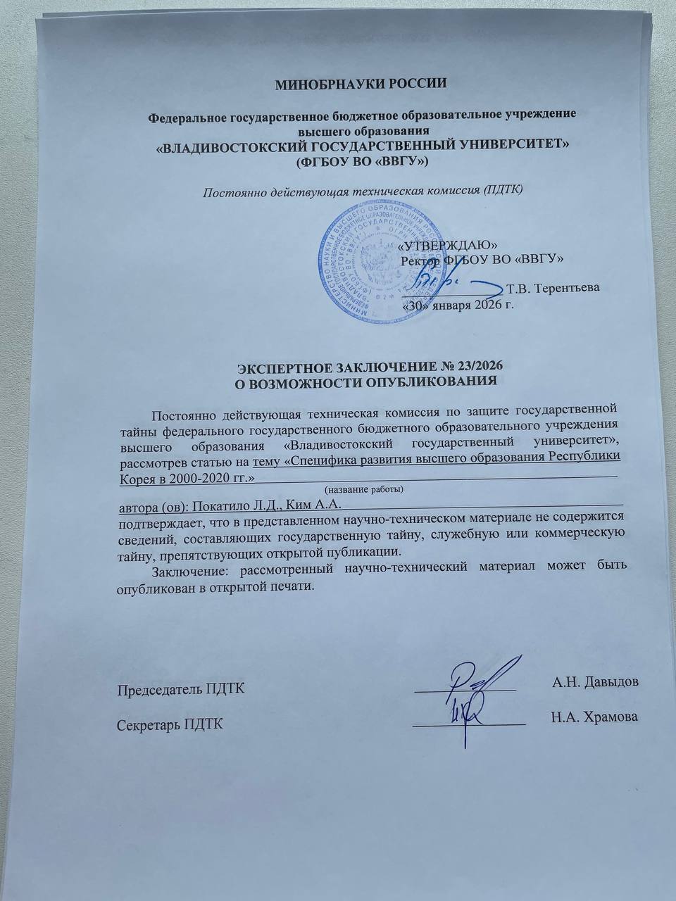 Специфика развития высшего образования Республики Корея в 2000-2020 гг.