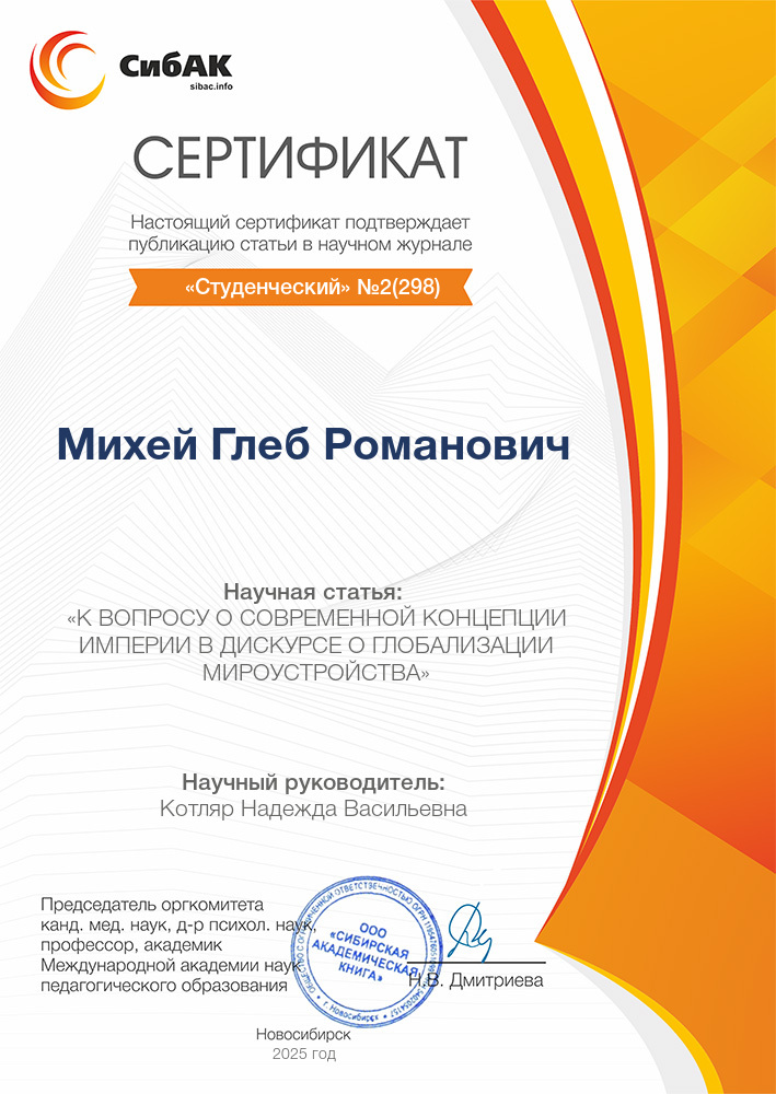 К вопросу о современной концепции империи в дискурсе о глобализации и мироустройства