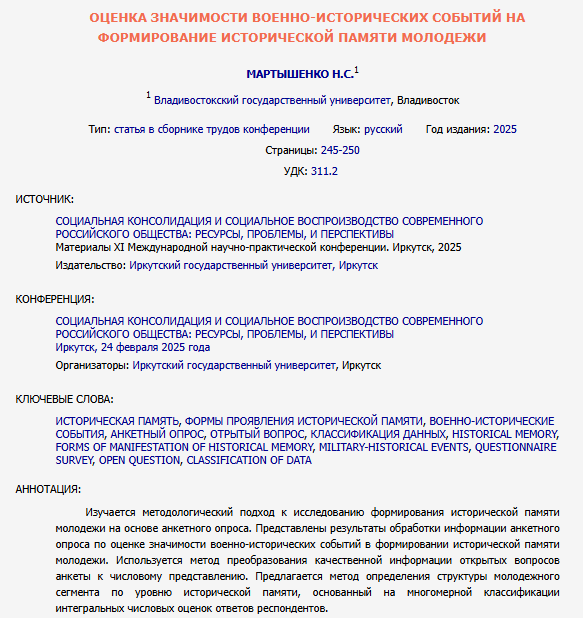 Оценка значимости военно-исторических событий на формирование исторической памяти молодежи