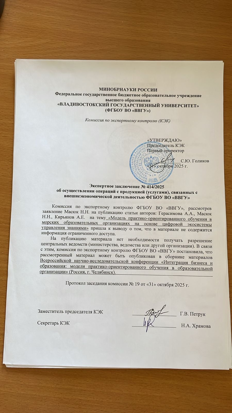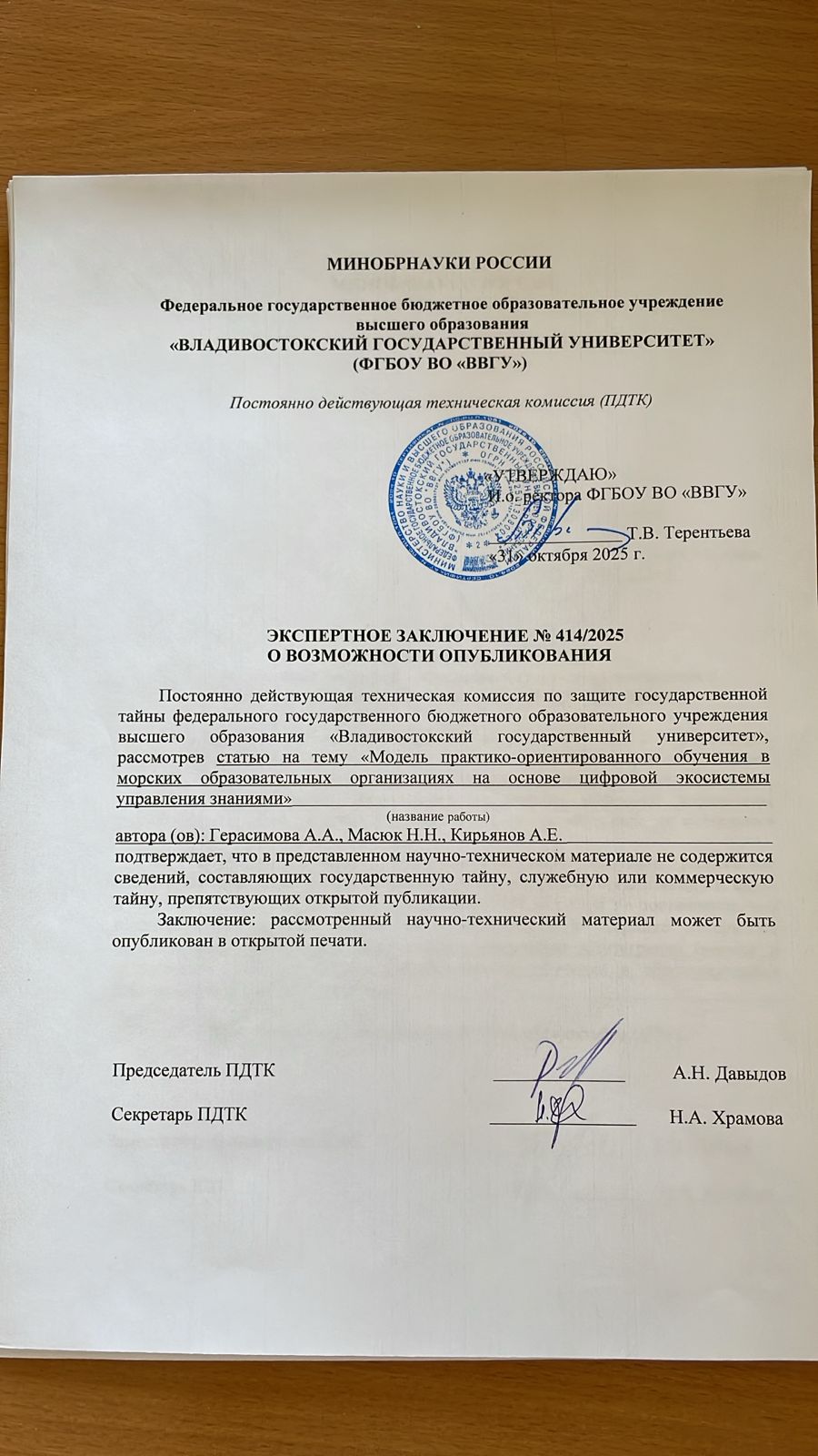 Модель практико-ориентированного обучения в морских образовательных организациях на основе цифровой экосистемы управления знаниями