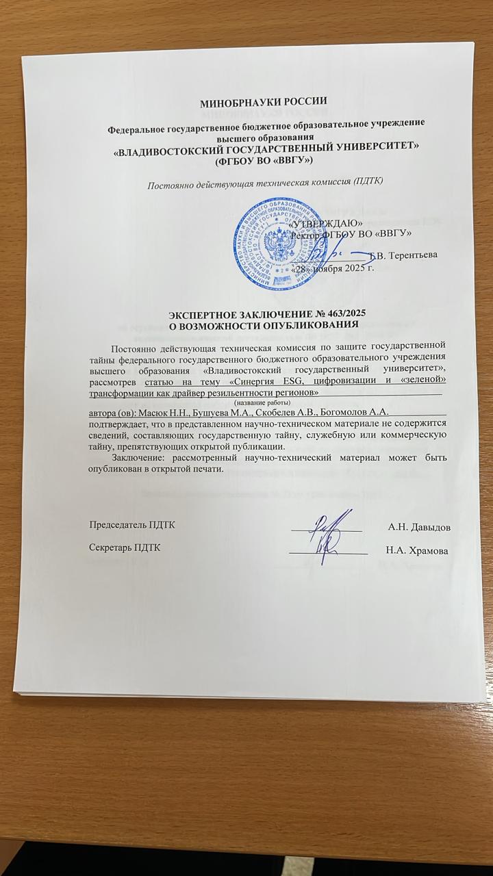 Синергия ESG, цифровизации и "зеленой" трансформации как драйвер резильентности регионов